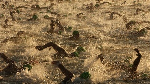 Going into the 2nd loop, I was getting “rolled up” by everyone and their Grandma. My race strategy changed to “just don’t drown” as it seemed that I was getting pummeled by every age grouper that came around me, and every time I made contact with someone (or rather they made contact with me) the lack of wetsuit just made me more freaked out and likely to drag my legs to ensure I got another breath, slowing me down considerably. Somehow I made it out of the water, relieved to be alive, but obviously about 20 minutes down on the leaders already.