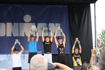 I think my fitness increased in the swim and the bike off of the fitness from Boise, I swam a PR of 28:30 for the 1.2 miles, and rode a (24.0 mph avg) for the 56 mile course, which had some nasty, spikey climbs thrown in. I thought for sure I could run myself into 3rd place on the run given my position on the bike, but folded big-time at during the last half, clearly not recovered from the effort at Boise. I think I clocked or , which was still good for 5th.